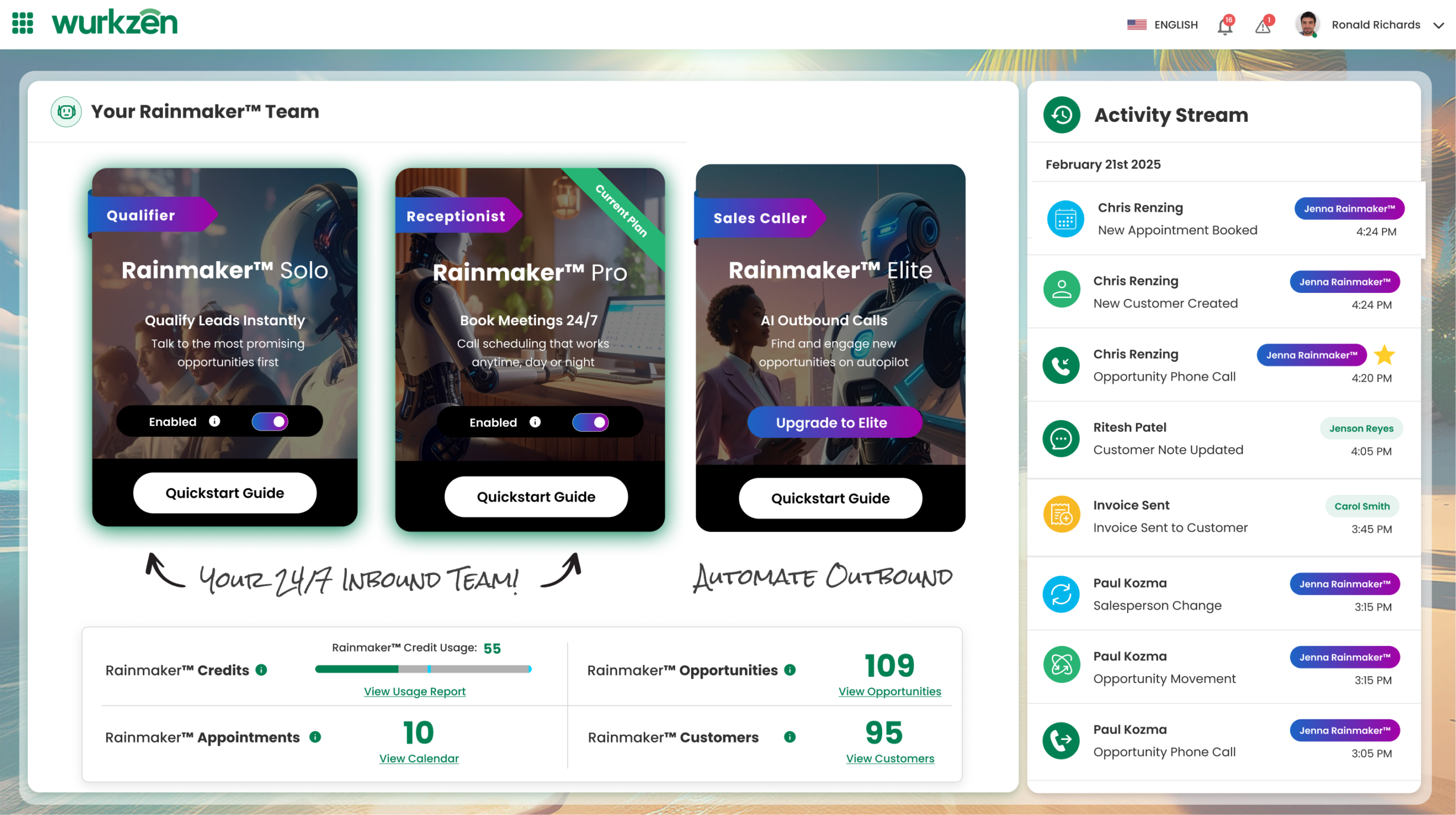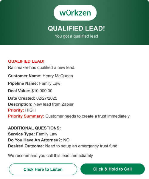 Wurkzen Rainmaker™ is an enterprise-grade voice AI platform built to automate and optimize your entire phone-based revenue workflow. It combines an AI Voice Caller, a 24/7 AI voice receptionist, and an AI SDR into a single, unified system that engages, qualifies, and routes leads automatically.
