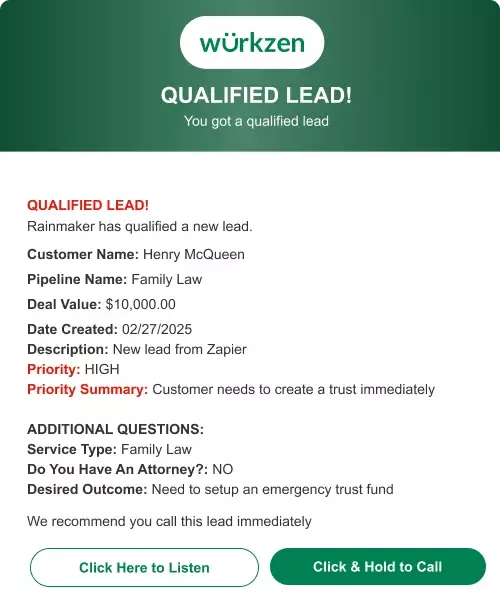 Rainmaker™ Qualifier is purpose-built for instant lead qualification the moment a new lead is created. It focuses specifically on inbound leads submitted through your website, online forms, marketing platforms, and webhooks — ensuring every opportunity is engaged immediately, not hours later.